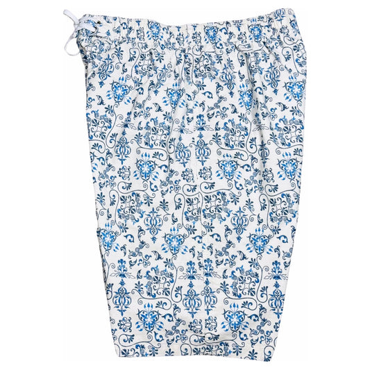 Fixed (Non-Elastic) Waist Board Shorts 100% Cotton "Stage Coast" Print Men's CUSTOM