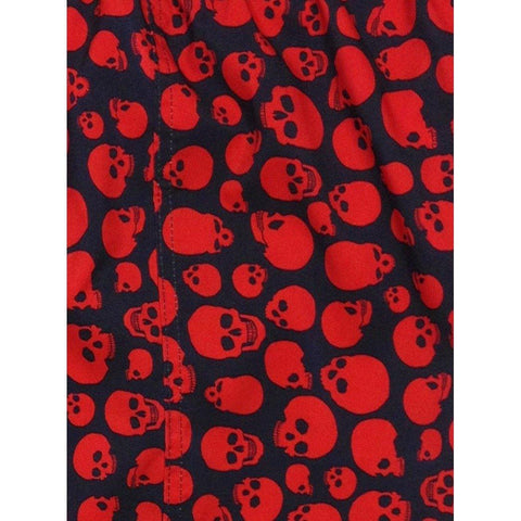 "Live to Ride" Skulls Print Womens Board Shorts - Regular Rise / 7" Inseam (Black+Red)