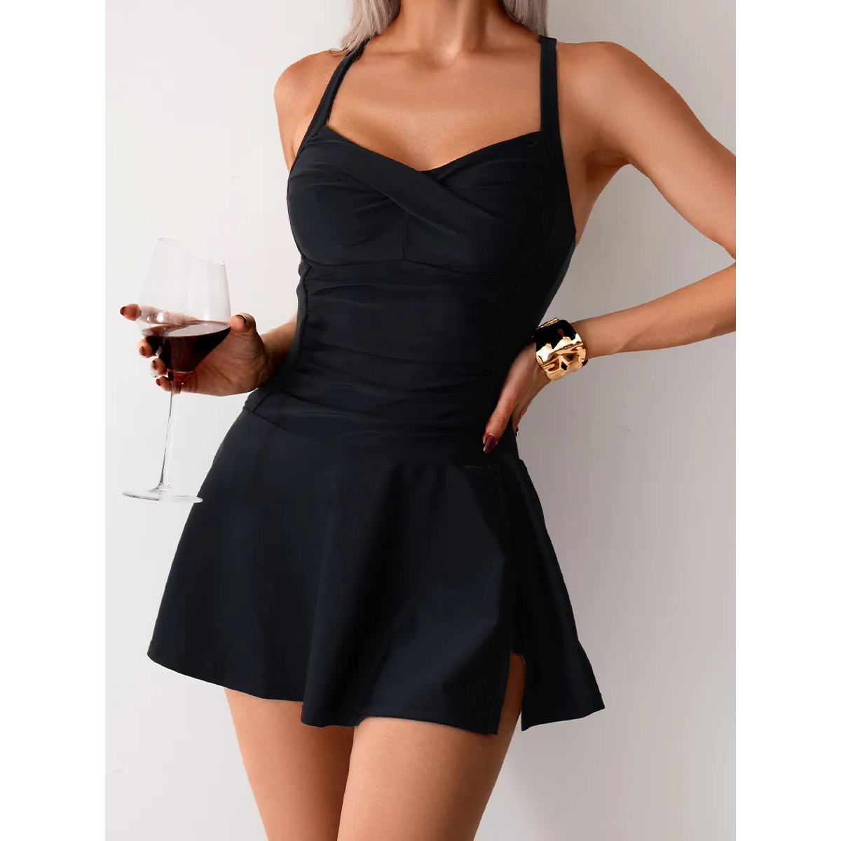 • Women who want the look of a swim dress with the flexibility of a two-piece