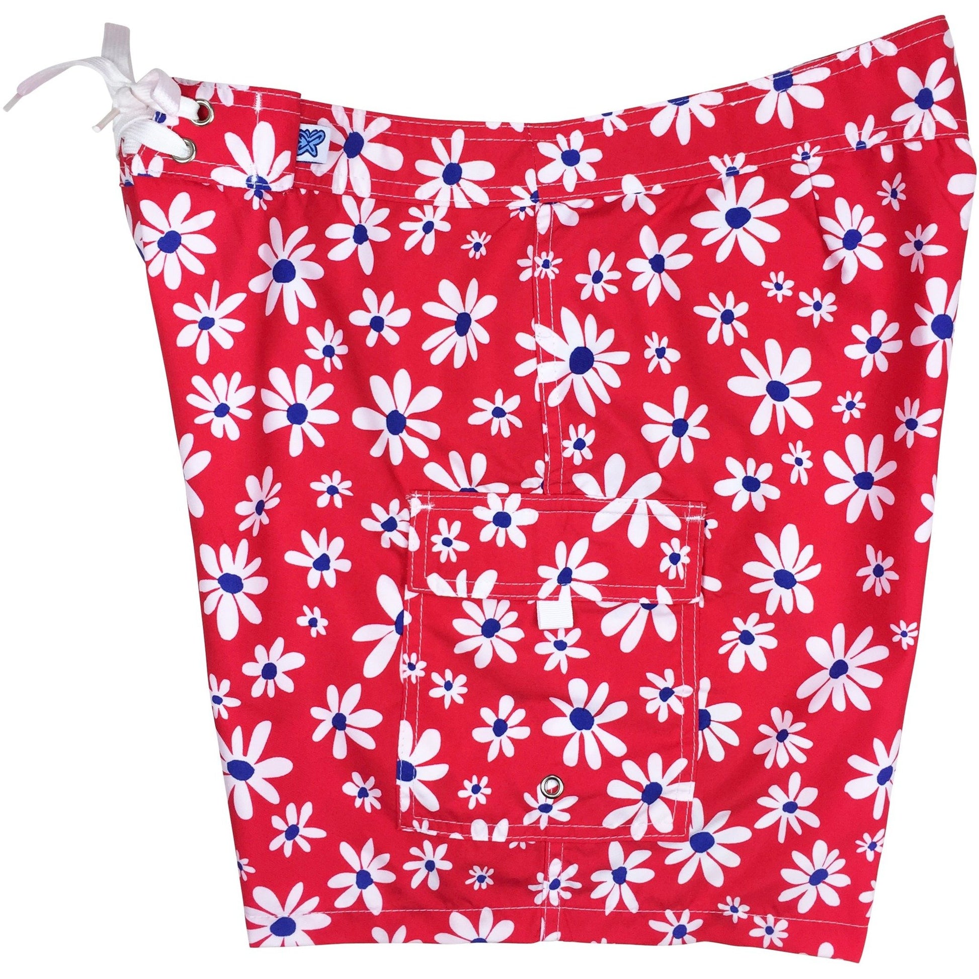"Summer of Love" Womens Board Shorts - Regular Rise / 7" Inseam (Red) - Board Shorts World